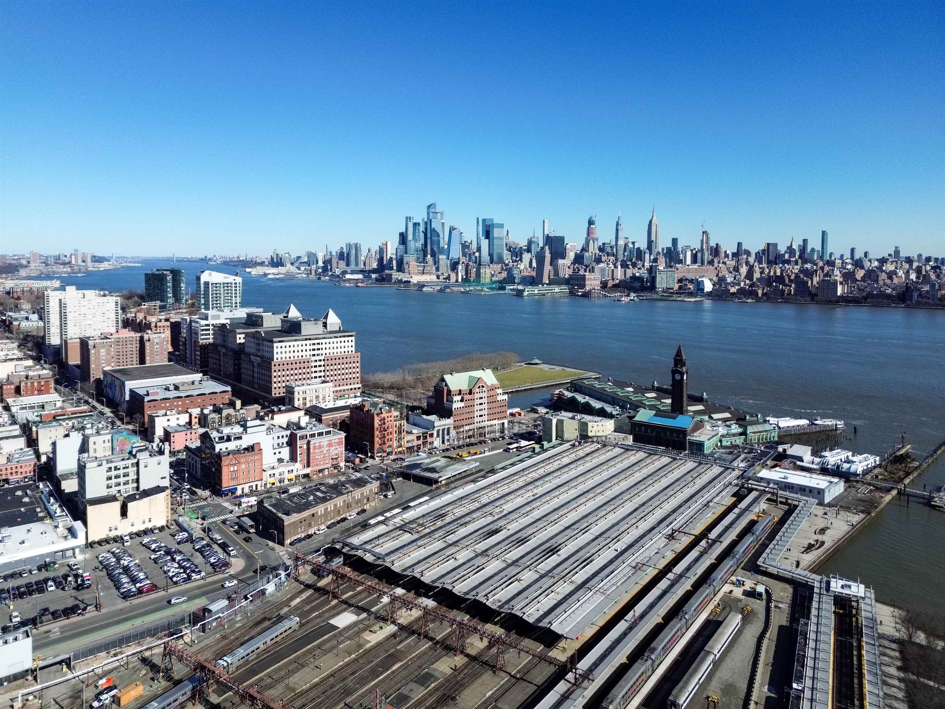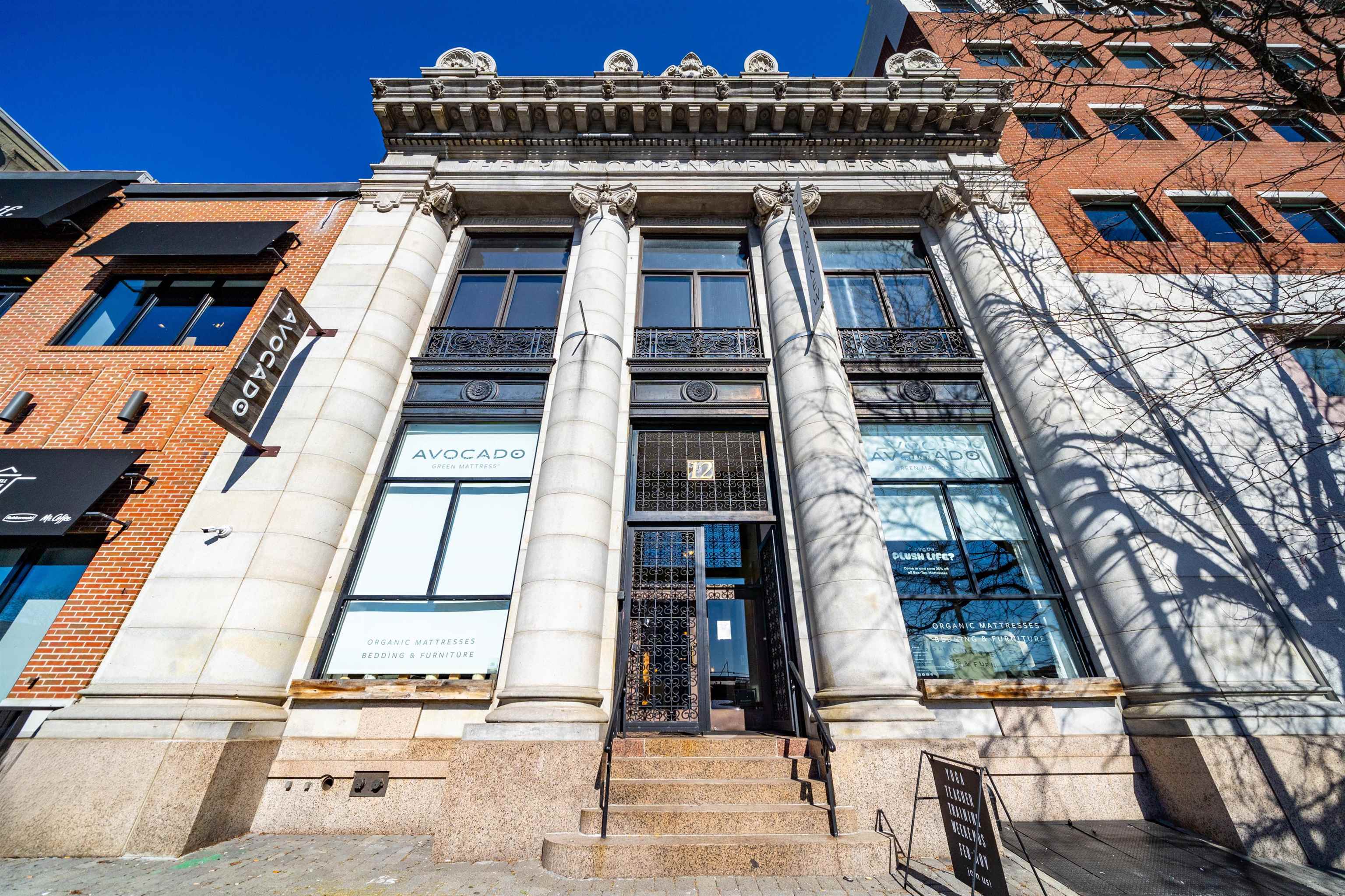 Exceptional 905 SF Office/Retail space or Showroom, boasting captivating 15'+ ceilings, hardwood floors, and expansive windows that flood the space with natural light. Custom light fixtures and moldings enhance the ambiance, elevating the atmosphere to one of sophistication and style. This rare opportunity in the Historic NJ Trust Bank Building, featuring massive, light-filled windows and custom work throughout. Conveniently located across from the Downtown Hoboken Transit/PATH and in close proximity to the New Redevelopment Zone with easy access to transportation in a vibrant area. Don't miss the chance to make this remarkable space the home for your business. Embrace the opportunity to set up shop in this prestigious location and elevate your business to new heights. Many uses and possibilities for this unique space... Events, retail, yoga, fitness, dance, general office, finance or company headquarters.