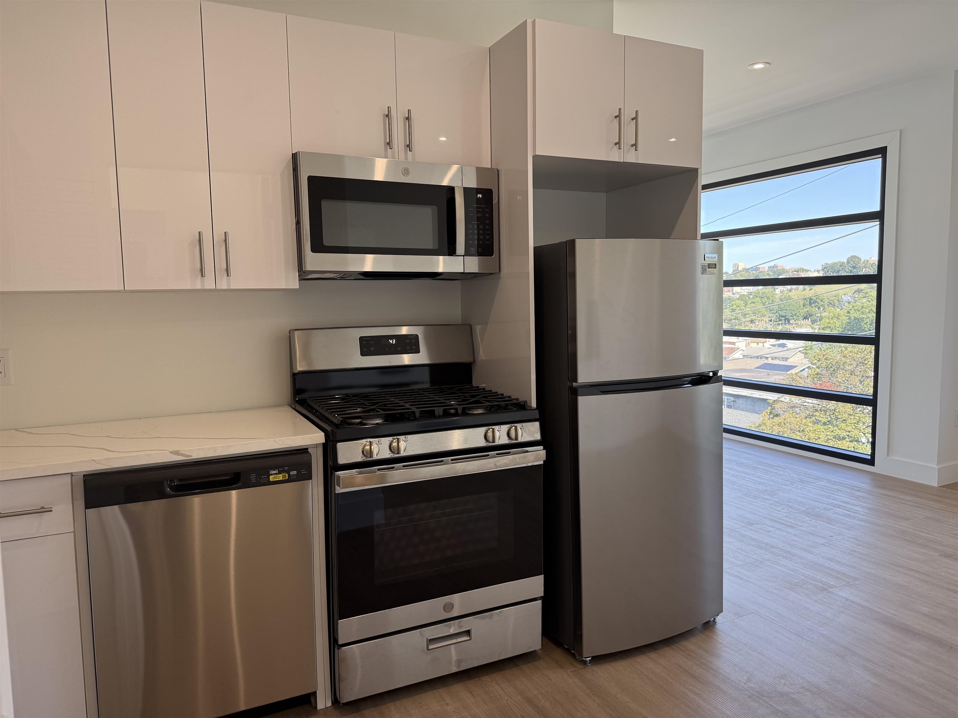 Welcome to a brand-new luxury residence in North Bergen-- this community features studio, one-bedrooms and two-bedroom layouts. Select homes feature private patios, creating a seamless blend of indoor-outdoor living. Offering exceptionally spacious and thoughtfully designed floor plans, 3309 Liberty Ave. surpasses the competition. Residents enjoy the convenience and security of keyless smart access, natural wood LVT floors enhance both style and durability. Oversized windows invite abundant natural light, creating bright and airy living spaces. The chef's kitchen, available in select layouts, boasts an island and state-of-the-art appliances, including a refrigerator, gas range, microwave and dishwasher in every unit. Each residence also includes a separate Samsung washer and dryer for effortless daily living along with an instant on hot water. Luxurious spa-style bathrooms elevate the experience with vessel sinks, custom cabinetry, and showerhead. To ensure personalized comfort year-round, every room is equipped with remote-controlled AC units. Fitness options in the gym. Attached garage and on-site parking available for rent. For those who value fitness and wellness, a fully-equipped gym is accessible in the building. Situated on a prime lot, this residence ensures tranquility while being just 15 minutes away from the bustling city. Commuting is a breeze, with major highways like Route 3, I-95, and Routes 1 & 9 less than 10 minutes away, making this location ideal for both drivers and those utilizing public transportation. Experience the perfect blend of modern luxury and unbeatable convenience at this spectacular home.