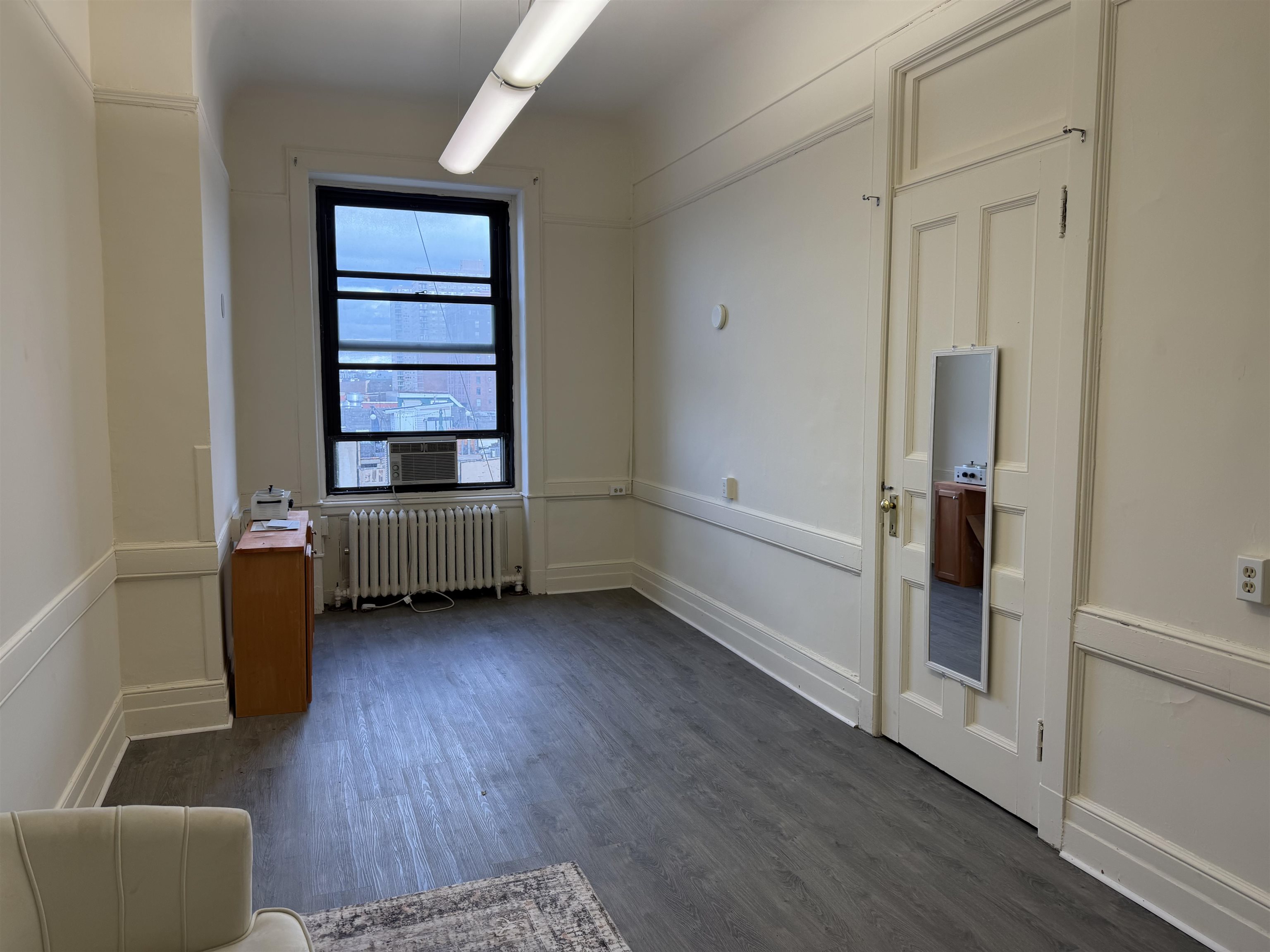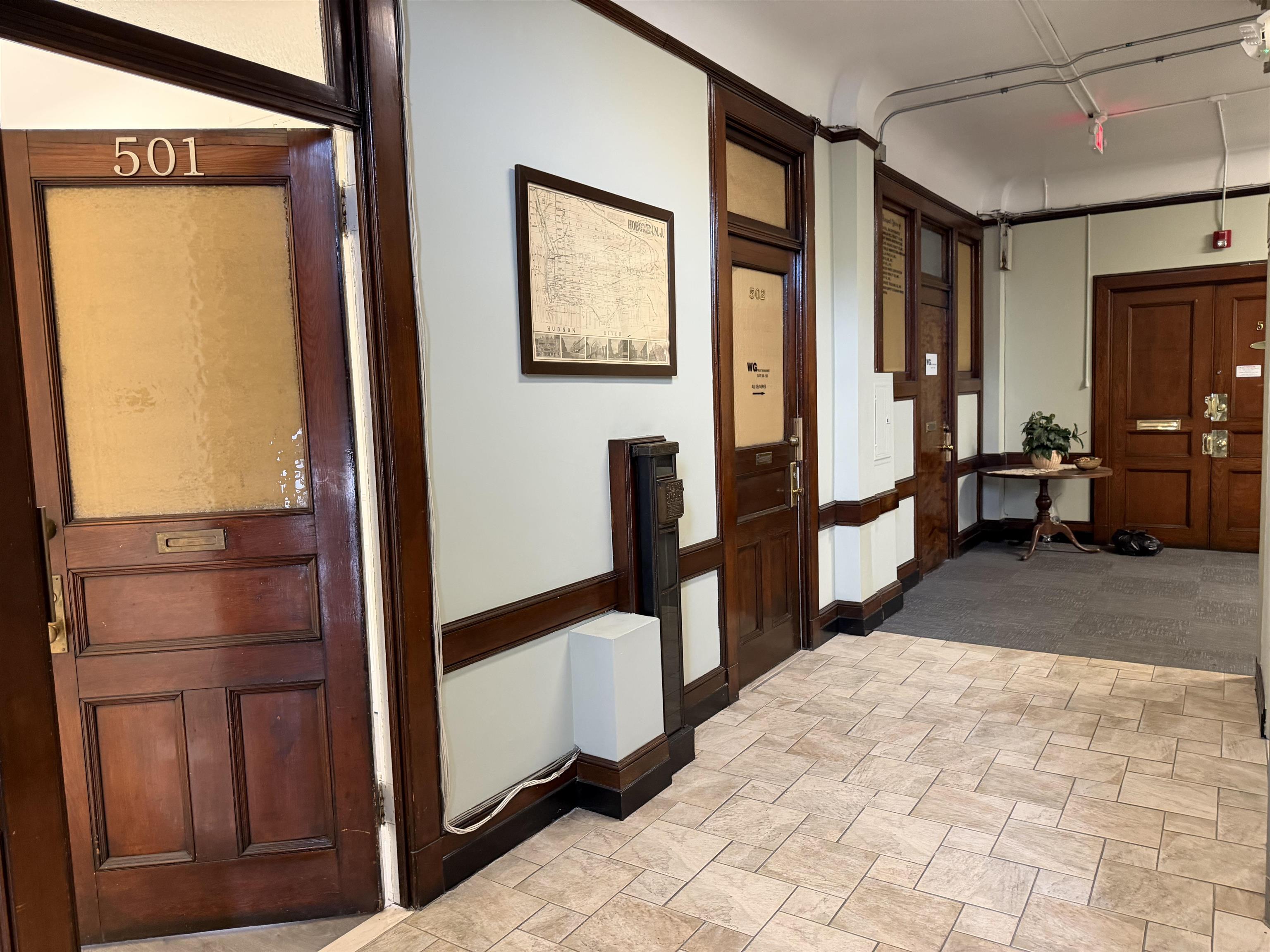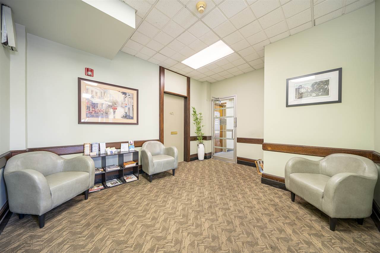 Renovated large private office for Lease in an Elevator building with all utilities included. North facing, natural light great for office or professional use. Common waiting area and restroom on the floor. Convenience of Starbucks downstairs and only one block to Washington St., NYC PATH, NJ Transit, Ferry and Busses.