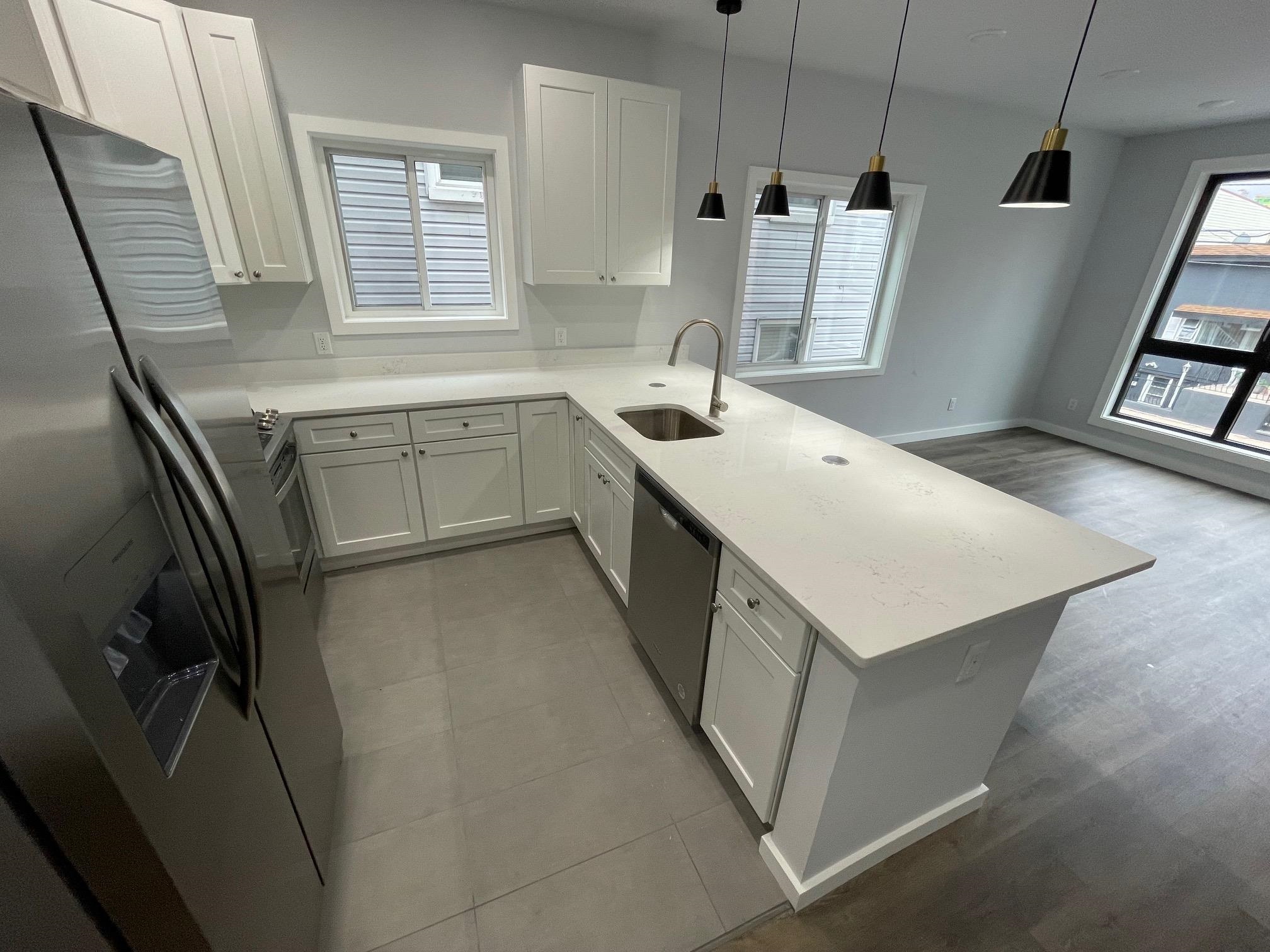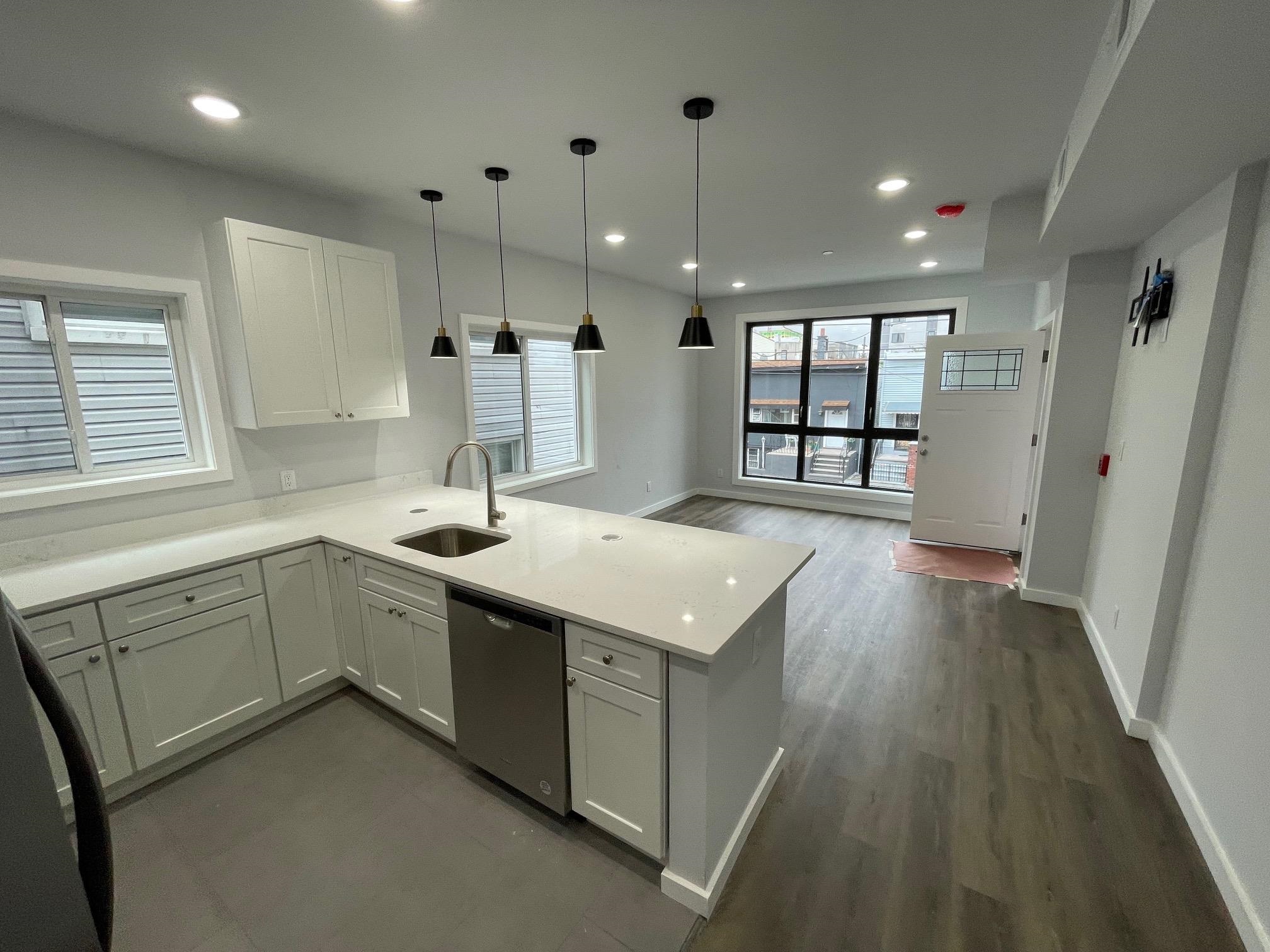 Spacious 1 year old new construction second floor rental in the heart of West New York, just off Kennedy Blvd, offering 1,200 sq. ft. of living space. This 3 bedroom, 2 bathroom unit features a large open-concept living and dining area with beautifully maintained hardwood floors, an updated kitchen with stainless steel appliances including a dishwasher, high ceilings, central heating and cooling, and plenty of natural light. Three bedrooms at the rear of the unit share two full bathrooms, and the apartment is freshly painted for a move in ready feel. Additional highlights include two parking spaces and a garage. Tenant responsible for utilities, credit check, and proof of income; pets considered with an additional fee. Available Sept 1st!