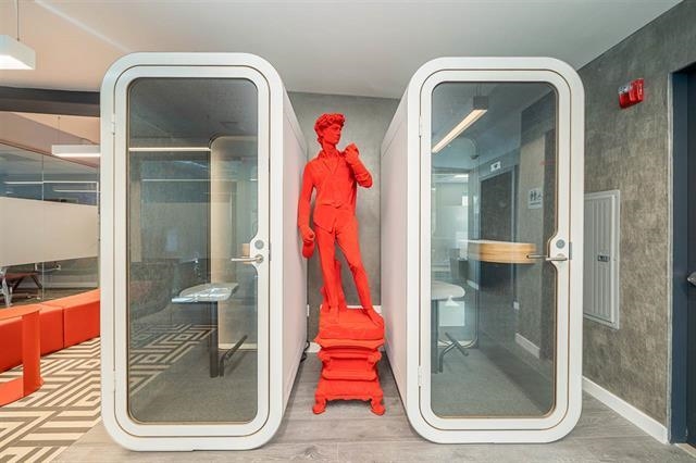 Beautiful sunny windowed private office in Eureka at 89 Hudson. Luxurious offices are Furnished and includes: All furniture, Desks, chair, filing cabinet, guest chair, VOIP phone and wi-fi. Keyless building entry, security cameras, conference room with Apple TV to project from laptop and private phone booth cubicles. Several common areas for waiting and lounging, kitchenette with coffee station, microwave and fridge, two Live walls of plants, your own mailbox and restrooms on each floor. Available Now with Flexible lease terms. Excellent location across from Starbucks in downtown Hoboken's business district, 1 block from Washington St and the PATH, Ferry Terminal, Taxis, NJ Transit Trains and Buses which makes it an ideal spot for Easy commute.