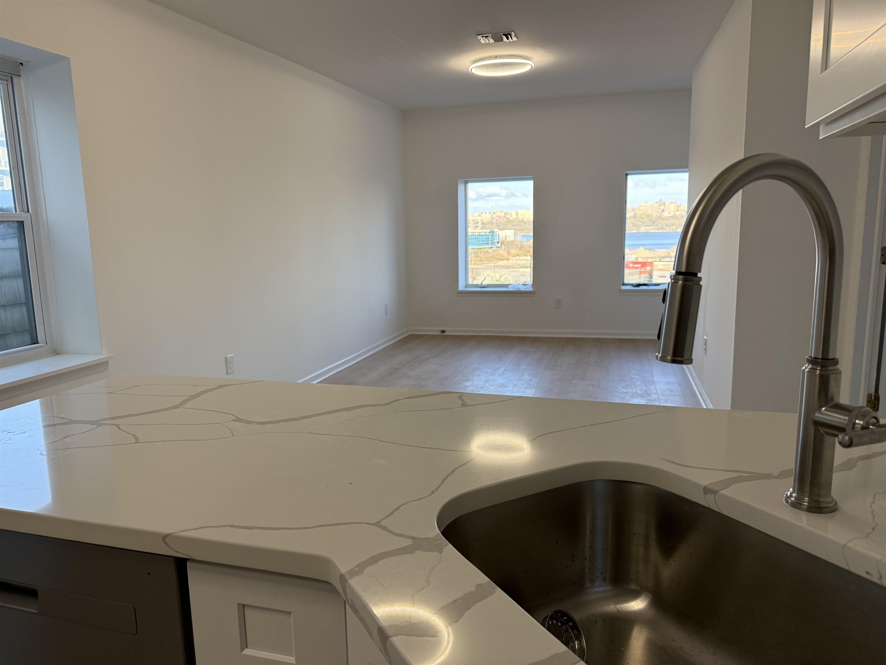 Move right into this newly renovated spacious 2 bedroom 2 bathroom. Freshly painted and renovated with new kitchen and bathrooms. Picture window with direct NYC skyline and Hudson River views. Kitchen has granite countertops with new stainless steel appliances: gas range, refrigerator, dishwasher and microwave. Open living room with plenty of room for a dining area and office. Other features include in-unit washer/dryer, hardwood floors throughout Central AC and private backyard. Bus to NYC at corner and close to shopping, restaurants and attractions. Commuters dream, one block to NYC bus, close to ferry and light rail. Restaurant, shopping area and many more nearby. Tenant pays utilities. Shared garage available for additional fee.